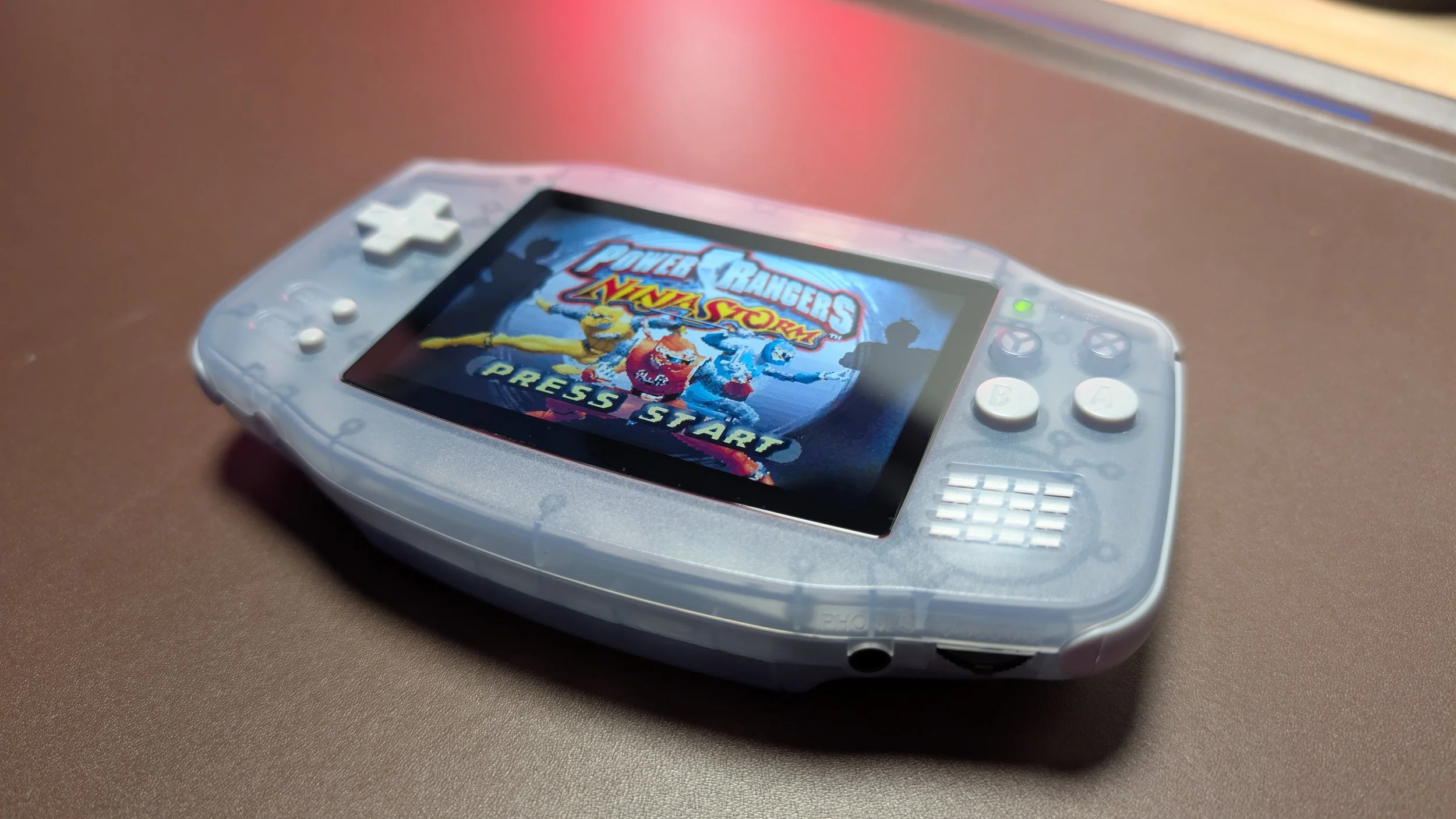 On the face of the system, the buttons are laid out basically identically to the GBA with the directional pad, start, and select buttons on the left side of the display. The A and B buttons are on the right with a single speaker under them. What was added to this layout are an additional X and Y button on top of the A and B. I think Anbernic made a terrific choice choosing buttons that match the color of the system for these two added buttons as they blend right in with the shell as if they didn’t exist. It’s a phantom button when playing GBA titles, but available to use when on a different emulation console. Rounding out the bottom frame is a volume scroller, a headphone jack and the power button.