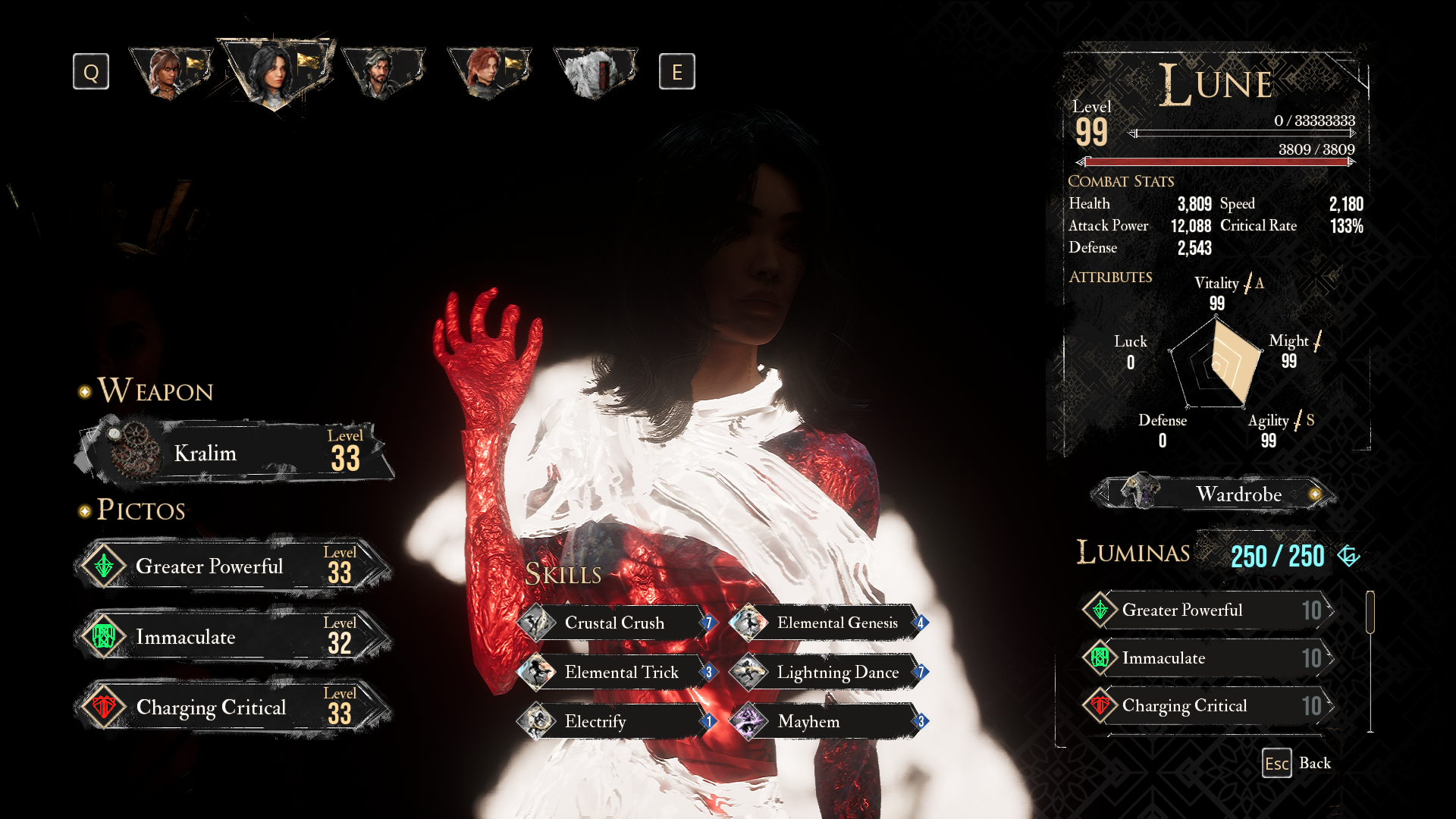 Combat sequences can last a few seconds to over an hour, and how long it takes basically all depends on the player’s skill and preparation outside of combat. Through combat and world exploration, players level up to gain more stats, find weapons, discover pictos, and unlock lumina (a picto that is mastered through combat). Putting together good combinations of pictos and lumina, plus equipping an ideal weapon and correctly allocating stats before combat, can make even the most difficult fights easy. Regarding difficulty, E33’s combat can get extremely difficult especially after the free DLC that was dropped on the night of The Game Awards.
