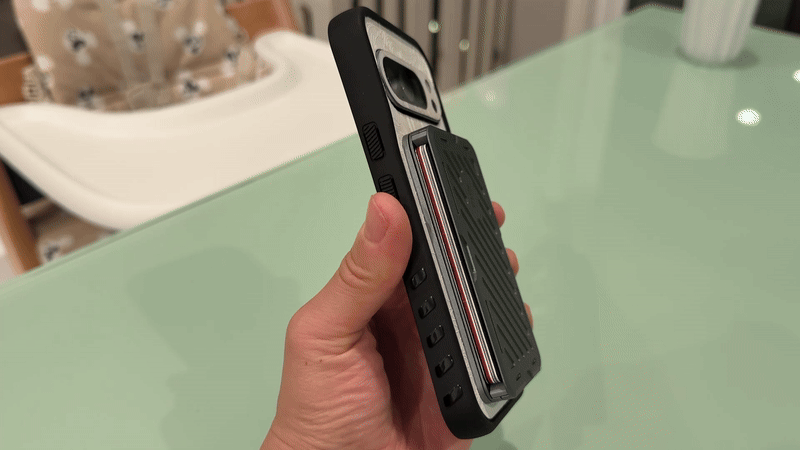 PunCube provides buyers with a belt clip that has a reusable nano-gel adhesive to stick onto the back of the wallet. There’s also the option to use one with a magnetic platform to attach to Magsafe or magnetic compatible smartphones. I’ve been personally using this planted on the back of my Google Pixel 10 Pro and I’m extremely impressed with the magnetic connection strength from the accessory attachment. It’s steady and won’t come off without purposely added strength. However, I’ve noticed that the wallet pops slightly open when I pull it out of my pocket, especially while it is attached to my phone. Even when I pull the phone down from my ear, the motion is enough to slightly trigger the mechanism to open. It’s shockingly loose. I don’t know if this is a mechanical failure from endurance use or if it's a mechanical design flaw, but I do know it’s not fully safe for my cards. I’ve attempted to dislodge the cards without intending to open up the wallet and have unfortunately succeeded with this test.