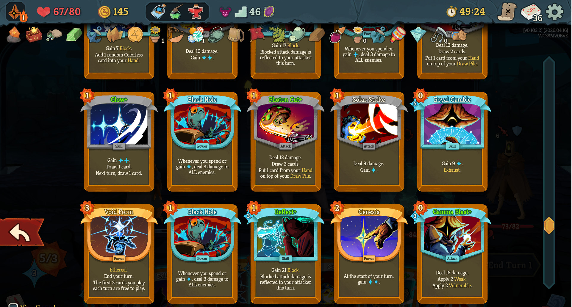 As mentioned above, the core gameplay loop in STS2 has stayed largely the same as the original. The player chooses a character to enter the spire with, which determines the base set of cards they get and can find. Progressing through the floors of the spire awards loot in the form of gold, a new card, and sometimes a relic or potion. All these things allow the player to build their deck and become stronger for the tougher floors above. The player also gets to choose from a few paths up the spire. However, each path equals a total of 48 floors with a random number of elite enemy encounters and three major bosses. It is the player’s goal to build a good deck and preserve enough health to be able beat all 48 floors. In true roguelike fashion, successfully defeating the spire means the player must start all over again. For every completed run, the player is rewarded with new cards, characters, relics, potions, and difficulties, making every attempt at the spire feel fun and different.