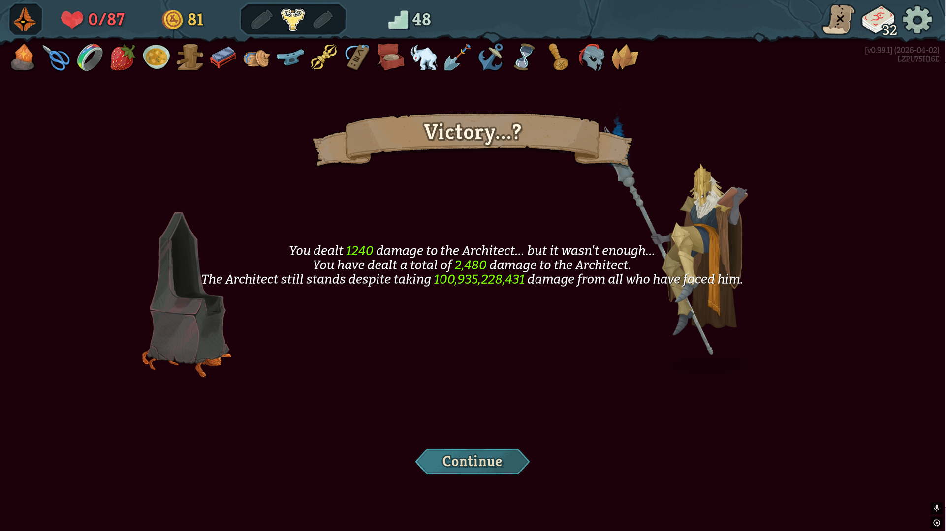 Neow, the exiled god of resurrection, is trapped at the base of the spire and needs it to fall to be free. Neow recruits the characters to take on the spire by promising them resurrections when they die. However, the characters were tricked. They do indeed get resurrected upon death, but there is no way take down the spire. When a character reaches the top of the tower where the architect lives, they are easily dispatched and forced to climb the spire eternally.