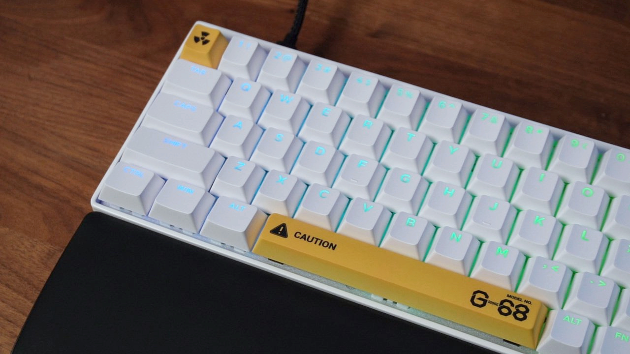 I’m actually not too certain what Syntech was going for with the theme of the Chronos. I think yellow accompanies the white PBT keycaps well, but there’s a nuclear symbol on the escape cap, a door exit symbol on the enter key, and a caution label accompanied by a Model No. G-68 signature on the space bar. The board’s official name (as far as I’m aware) is Chronos 68, so shouldn’t the text read C-68? Where does the G come from? Maybe I’m missing a nod to a game or show, but I just think of this as the Chernobyl board now. If I were to purchase one of these for my own personal use, I’d likely choose the all-black model. It’s extremely clean looking to me from the photos.